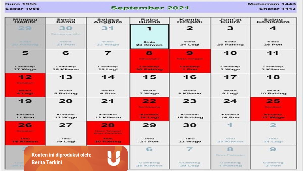 Kalender Jawa September 2021 Beserta Daftar Tanggal Baiknya Kumparan Com